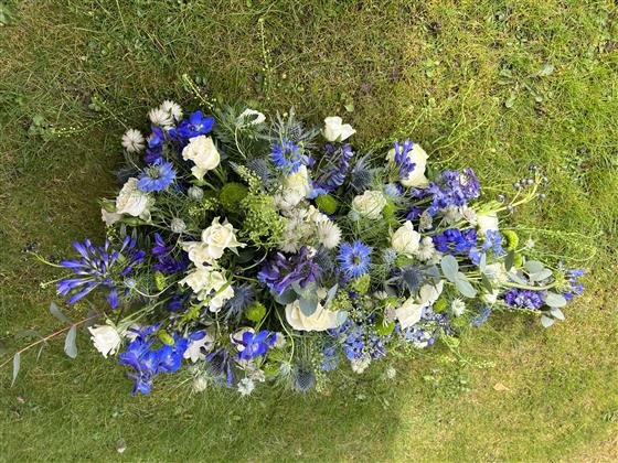 Funeral Spray Blue & White 1