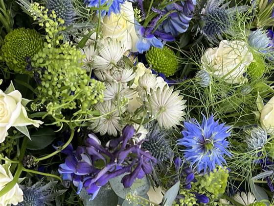 Funeral Spray Blue & White zoom 2Funeral Spray Blue & White zoom 3